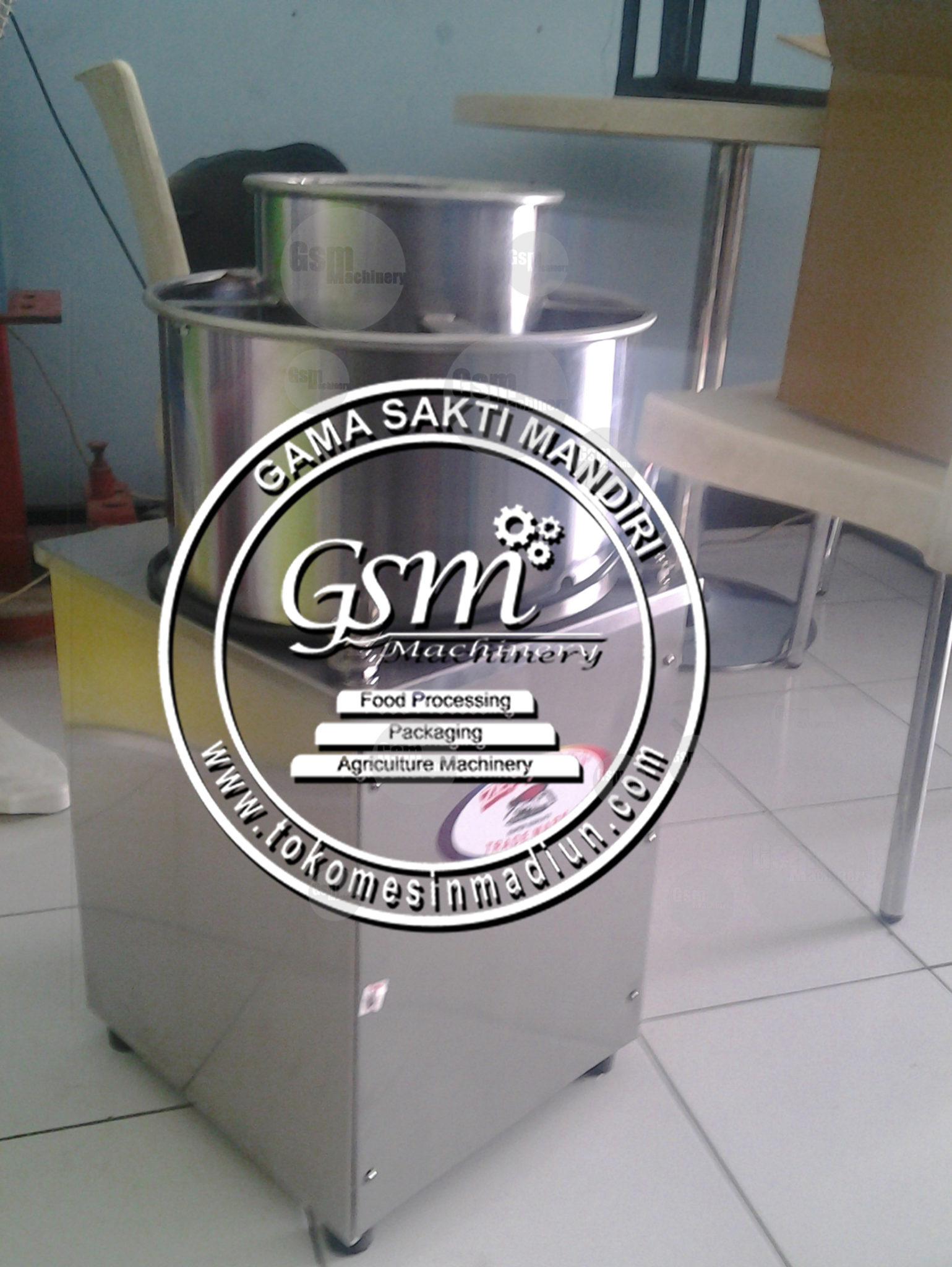 Alat mixer pencampur adonan bakso merk fomac dengan 2 lapis tabung tahan karat dilengkapi drain / kran pembuangan.