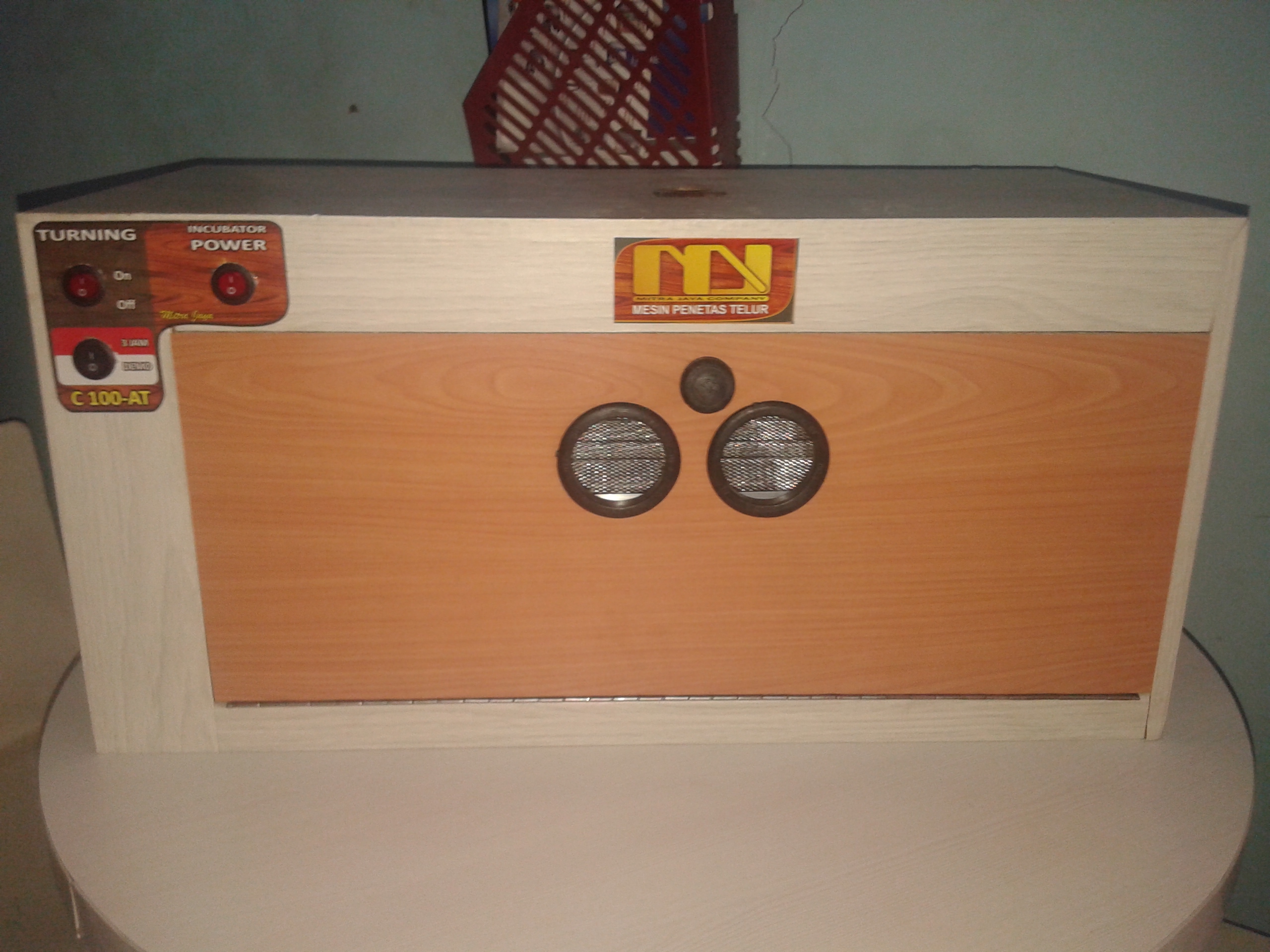 Mesin penetas telur c-100-at, sangat cocok untuk usaha peternakan unggas dengan skala kecil atau bagi anda yang baru akan memulai usaha penetasan telur, Mesin penetas telur dengan sistim rak putar otomatis waktu putar setelah 3 jam, jadi sangat memudahkan anda dalam proses penetasan karena anda tidak perlu lagi memutar telur secara manual, dilengkapi juga dengan thermostat untuk menjaga suhu ruangan agar tetap terjaga