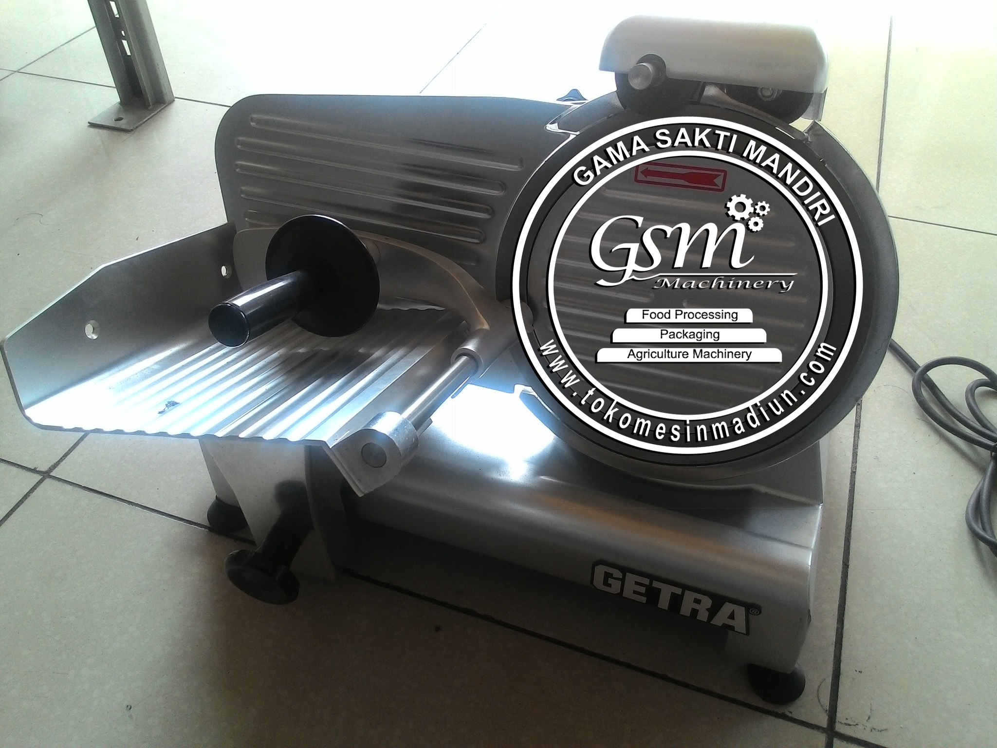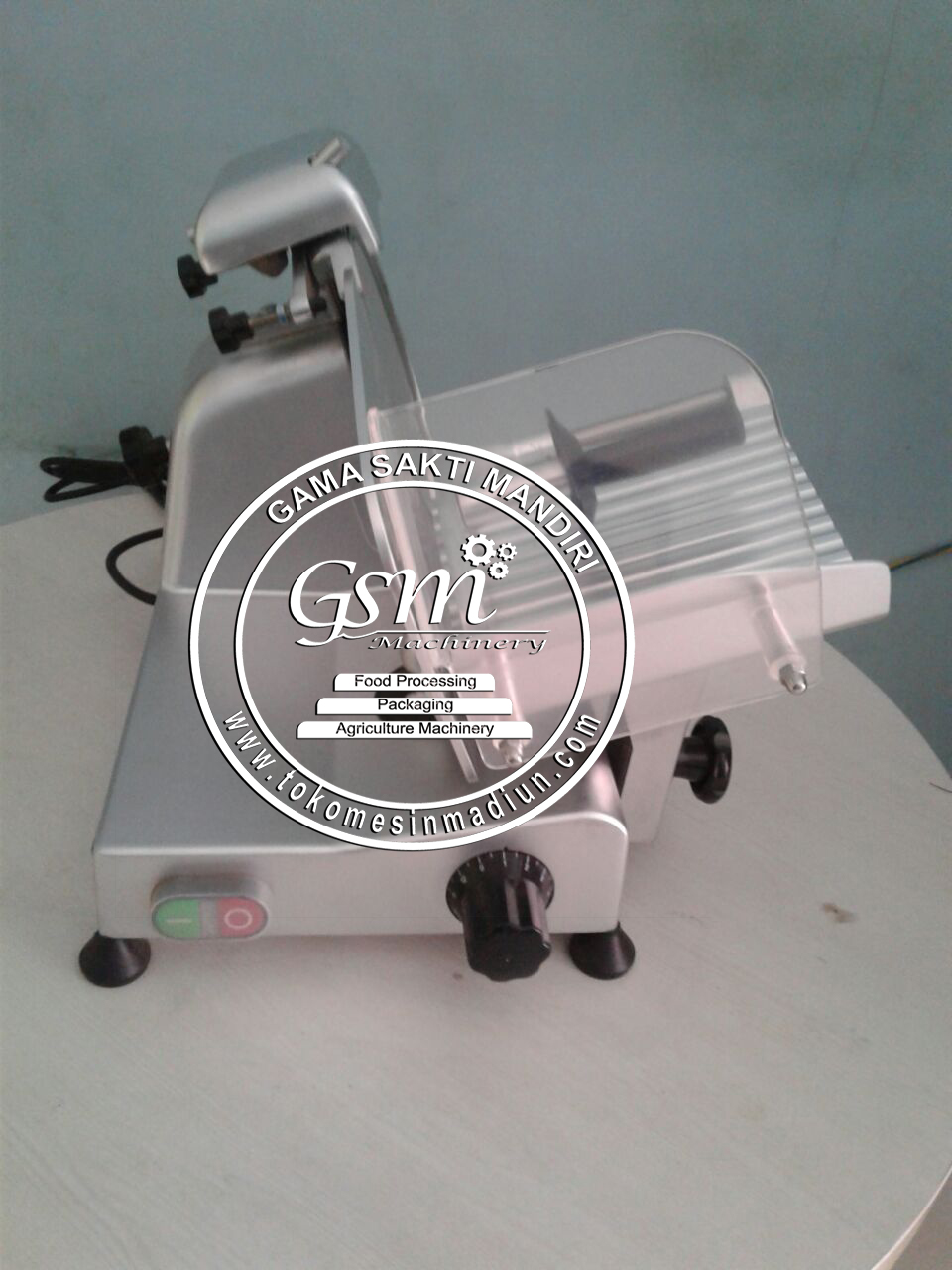fungsi mesin meat slicer ini untuk mengiris daging beku menjadi lembaran daging dengan ukuranyang bisa disesuaikan sampai 1 mm,mesin meat slicer ini selain berfungsi untuk mengiris daging mesin ini bisa juga difungsikan untuk mengiris tempe atau membuat keripik tempe,kerupuk lontongan dan berbagai jenis olahan keripik lainnya.pisau mesin meat slicer ini terbuat dari bahan stainless steel dan dilengkapi dengan batu pengasah.